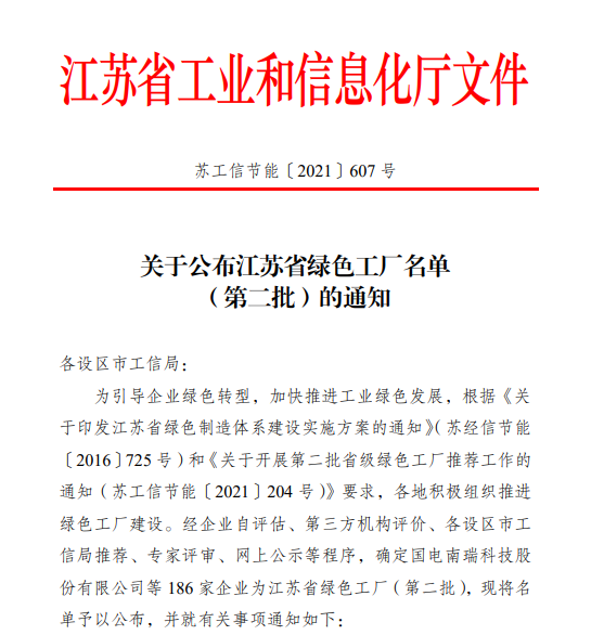 2021年12月29日,im体育官方网站成功入围了江苏省绿色工厂名单。